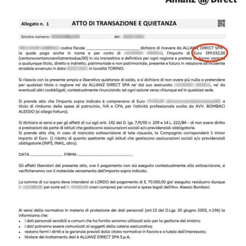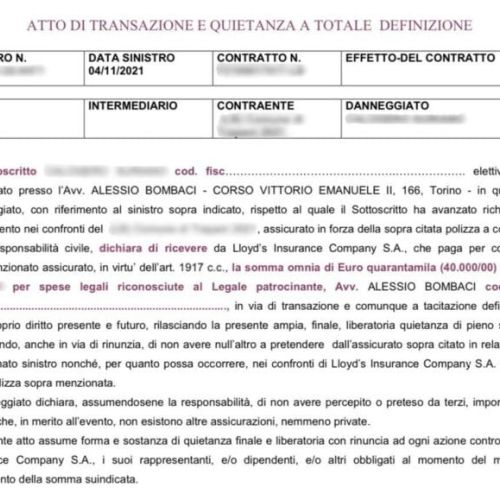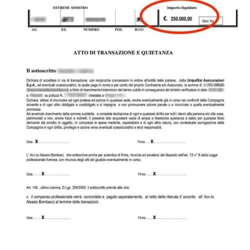 L’iter prevede una prima fase stragiudiziale in cui il nostro Studio Legale invia una diffida alla controparte ed alla sua compagnia assicurativa, finalizzata a raggiungere un accordo bonario. Se ci sono i presupposti per una risoluzione amichevole, si formalizza la transazione con una scrittura privata e il danneggiato viene subito risarcito.